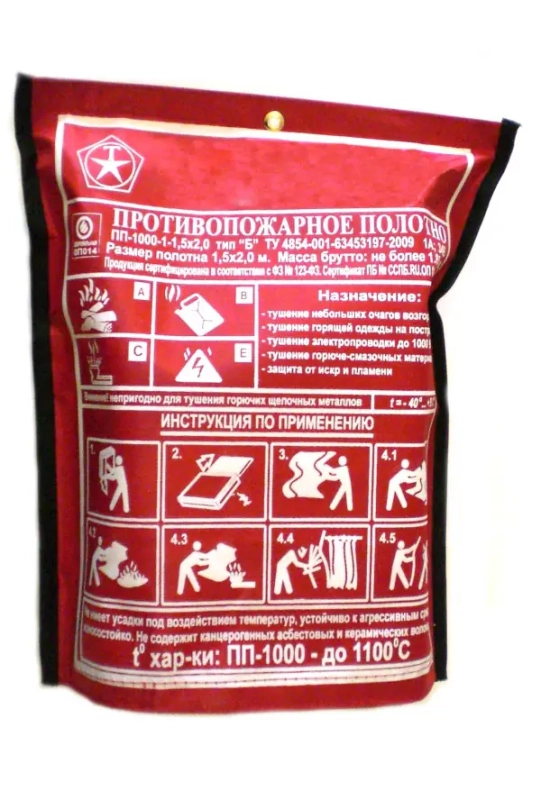 Противопожарное полотно представляет собой огнеупорную ткань для накидывания на очаг возгорания и предотвращения доступа кислорода.