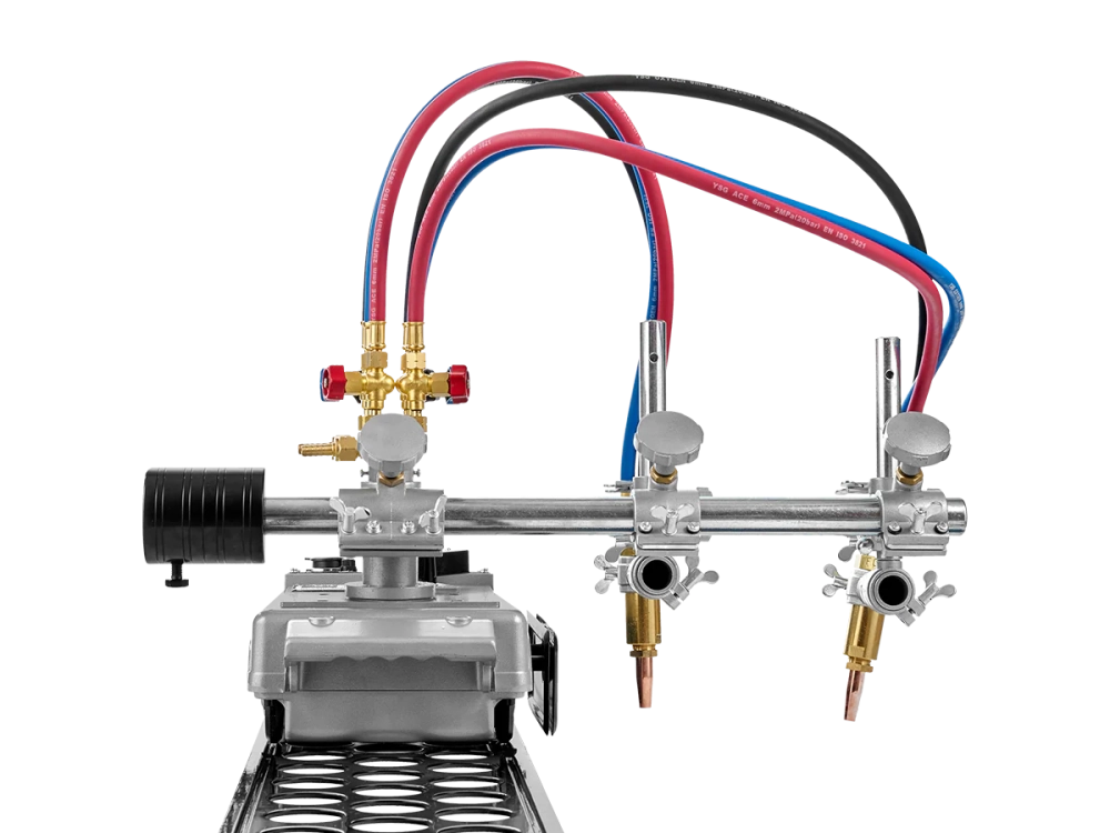 Резка выполняется двумя газокислородными резаками, установленными в держателях на самоходной тележке. Зажим крепления резаков для машин термической резки имеет реечный механизм, который позволяет перемещать резаки, регулировать их высоту установки над поверхностью металла, а также устанавливать угол наклона резаков в пределах ±45°. Положение резаков фиксируется винтами.