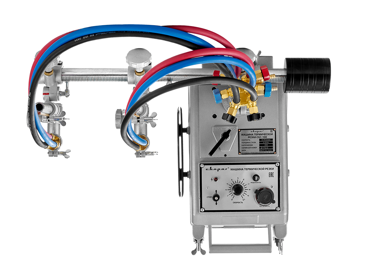 Газорезательная машина CG1—100 (с 2 резаками) - машина переносного типа с двумя резаками для прямолинейной, радиальной резки и снятия фаски под сварку с кромки стальных листов толщиной от 5 до 100 мм.