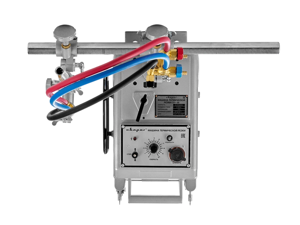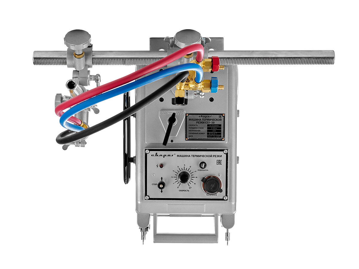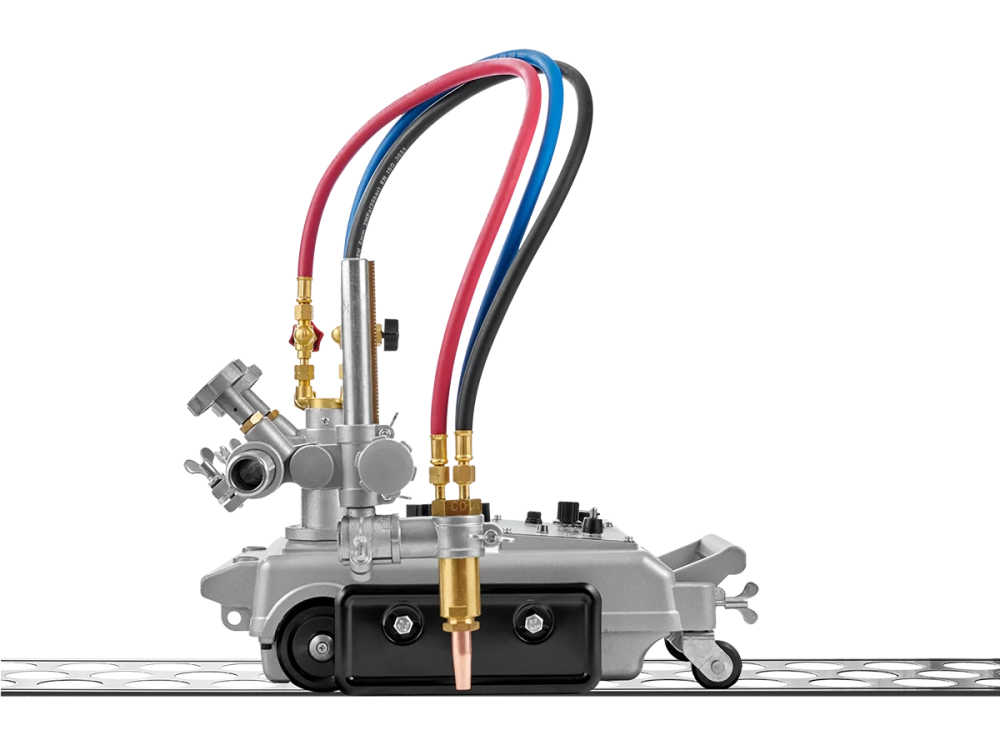 Резка выполняется газокислородным резаком, установленным в держателе на самоходной тележке. Зажим крепления резака для машин термической резки имеет реечный механизм, который позволяет перемещать резак, регулировать его высоту установки над поверхностью металла, а также устанавливать угол наклона резака в пределах ±45°. Для фиксации резака предусмотрены винты