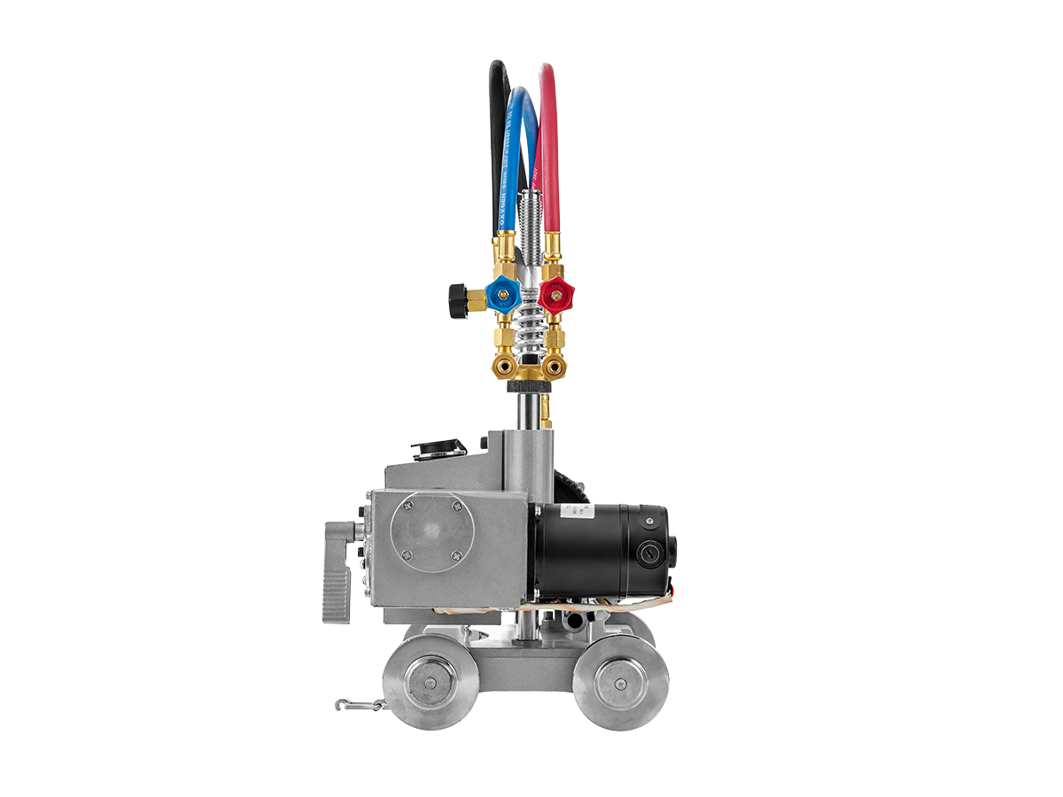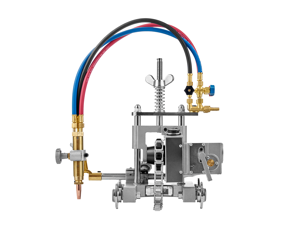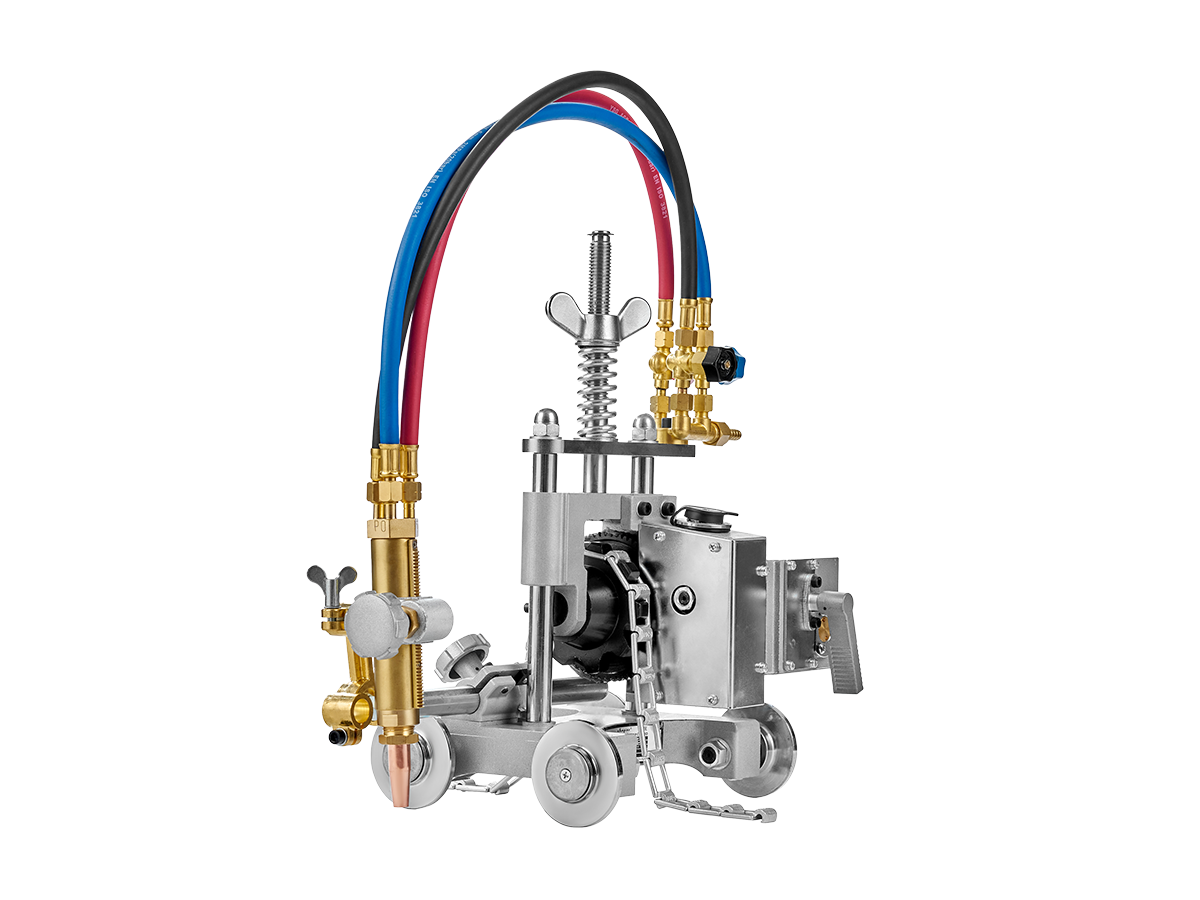 Резка производится резаком, который можно регулировать в разных плоскостях, устанавливать на необходимую высоту над поверхностью металла. Предусмотрена возможность регулировать угол наклона резака. Машина перемещается и удерживается на трубе с помощью специальной цепи.
