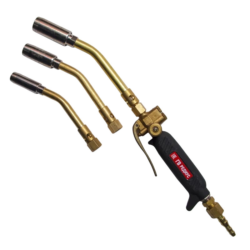 Газовоздушная горелка Redius ГВ-103-Р с рычагом обычно применяется для локального нагрева небольших по размеру поверхностей.