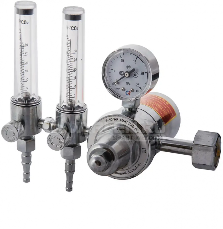 Регулятор расхода газа У-30/АР-40-П-220-Р-2 предназначен для понижения давления газа и автоматического поддержания постоянным заданного расхода при питании постов и установок в среде защитных газов. Регулятор обеспечивает тонкую настройку и стабильное поддержание заданного рабочего давления (расхода). Регулятор оснащён двумя ротаметрами.