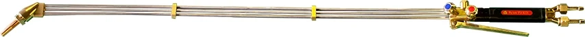 Удлинённый резак ОЛИМП Р3-300КУ с клапаном КР (кислород режущий) повышенной надёжности предназначен для ручной газокислородной разделительной резки низкоуглеродистых сталей толщиной до 300 мм, применяется при отрезке прибылей, литниковых систем в литейном производстве и резке металлолома.