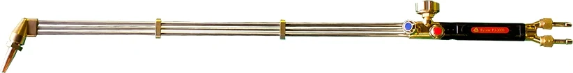 Удлинённый резак ОЛИМП Р3-300ВУ с вентилем КР (кислород режущий) повышенной надёжности предназначен для ручной газокислородной разделительной резки низкоуглеродистых сталей толщиной до 300 мм, применяется при отрезке прибылей, литниковых систем в литейном производстве и резке металлолома.