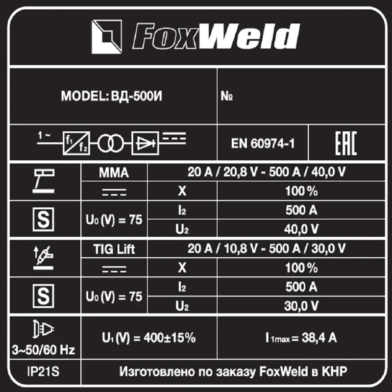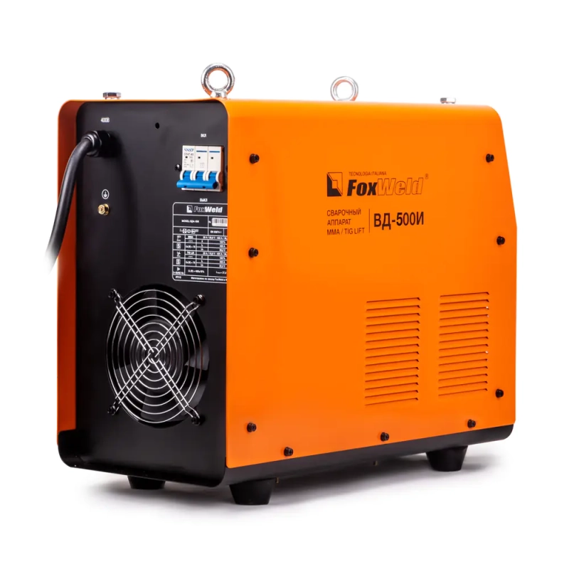 Так как аппарат имеет трёхфазное питание от 400 Вольт, то выдавая даже максимальный сварочный ток в 500 Ампер, линии электропитания производственной площадки не будут испытывать перегрузку и нагреваться, так как вся нагрузка равномерно распределяется на 3 линии, а не на одну, как у техники, подключённой к одной фазе. Профессиональное исполнение ВД-500И и реализация самых современных сварочных технологий, выполненных на инверторе с IGBT транзисторами. Одной из уникальных возможностей серии ВД является возможность выдавать одинаковый максимальный сварочный ток на всех режимах сварки (ММА или TIG LIFT). Аппарат гарантирует стабильную работу покрытым электродом максимальным диаметром 8 мм. А в режиме TIG LIFT сварка неплавящемся вольфрамовым электродом возможна при его максимальном диаметре в 4 мм.