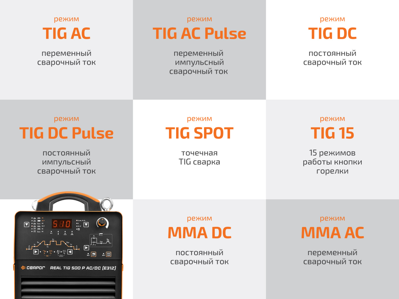 Аппарат аргонодуговой сварки Сварог Real TIG 500 P AC/DC (Е312)
