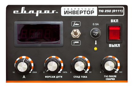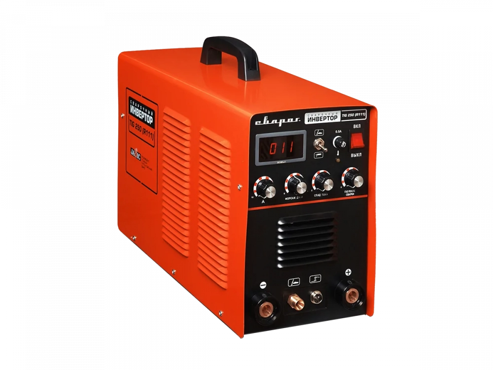 Сварочный аппарат серии STANDART TIG 250 (R111) профессионального уровня для аргонодуговой сварки (TIG) и ручной дуговой сварки покрытым электродом (ММА). Оборудован цифровым индикатором параметров сварки и большим набором ручных регулировок.