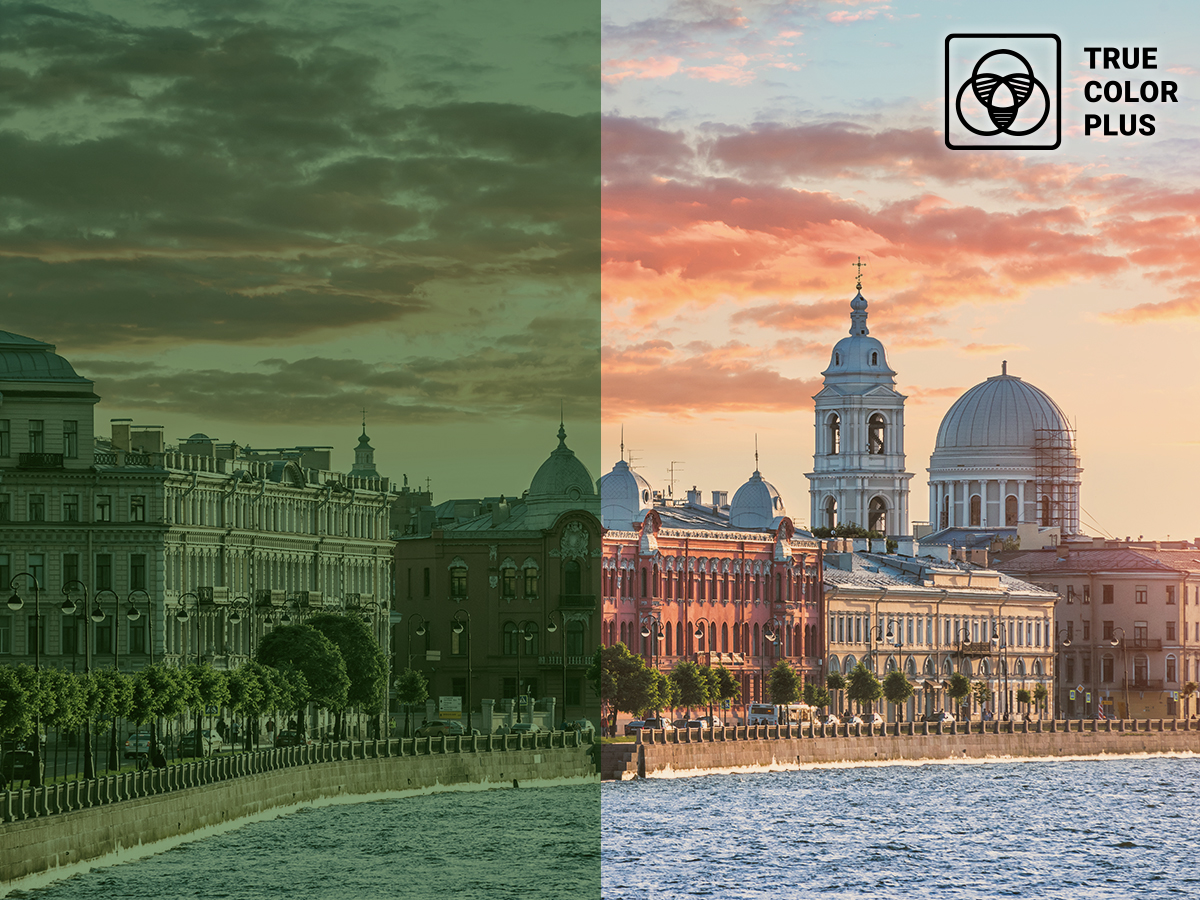 Мы используем уникальную технологию в светофильтрах, чтобы вы смогли наслаждаться естественными цветами и максимальным цветовым объёмом. Оцените по достоинству натуральные цвета и детали, которые обеспечивают светофильтры TRUE COLOR PLUS.
