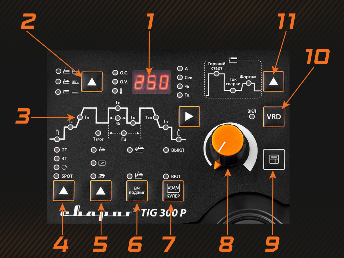 Аппарат PRO TIG 300 P (W232) имеет удобную систему управления