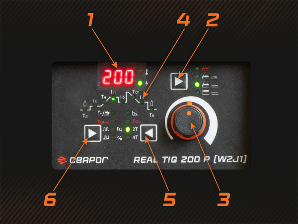 REAL TIG 200 P (W2J1) имеет классическую систему управления: