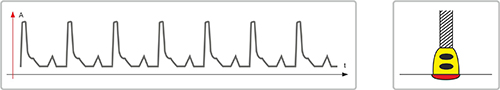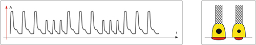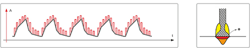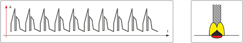Технология ПУЛЬС с высокой скоростью переноса. Высокая динамика переноса позволяет добиться более глубокого проплавления, одновременно со снижением теплового влияния на зону вокруг сварочного шва