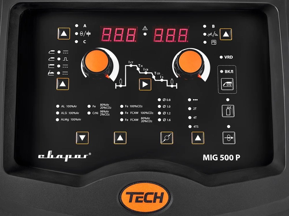 - Сварочная система TECH MIG 500 P сконструирована из металлического корпуса с надежной защитой из формованного пластика для защиты от повреждений при эксплуатации в самых сложных условиях