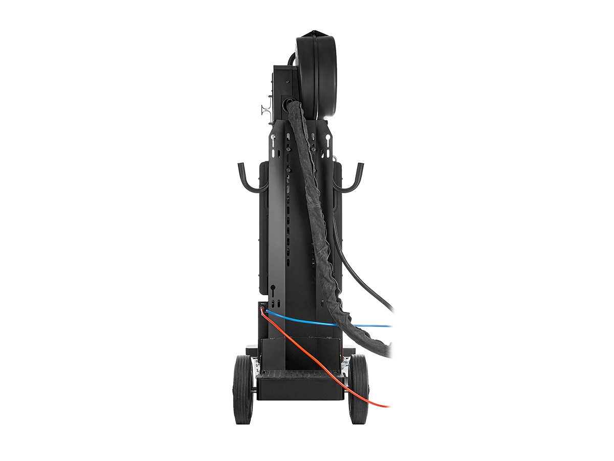 - Модульная конструкция включает источник сварочного тока, блок водяного охлаждения, механизм подачи проволоки, установленные на транспортную тележку. 4-колесная тележка оборудована платформой для установки баллона.